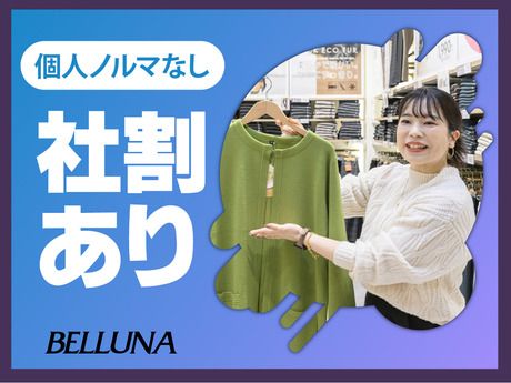 仕事内容 ベルーナのアパレル店舗スタッフ 販売スキル不要!個人ノルマ無し! ▼仕事内容 ★販売・接客 ★商品陳列・整理 ★品出し・補充 ★清掃 ★レジ応対 など ※お客様に試着やお探しの商品のご案内もあります。 先輩スタッフのフォローがあるので安心◎ お店で活躍している方の約8割が未経験からのスタート! 自分で考えたコーディネイトをSNSで発信する事もできちゃう☆ ★★嬉しい社割でオシャレを楽しめる★★ お得な社員割引(30%オフ)が使えるから、 流行りやシーズンに合わせてオシャレを楽しみながら働くことが可能◎ [例]トップス 定価 2,490円 → 社割 1,743円 <上下コーディネートしても3500円程度♪> ★面接時のPOINT★ 【面接1回】で完結♪♪ 入社日は相談の上、決定します。ご希望をお聞かせください◎ <面接での質問内容をご紹介>※店舗により多少異なります ・カンタンな自己紹介 ・なぜBELLUNAにご応募いただいたか ・今までどんなお仕事を経験してきたか(もちろんアルバイトデビューもOK♪) ・ご希望のシフトや出勤日数・曜日など ・いつから働きたいか ◎面接といっても、堅苦しくない面談のようなスタイルで実施しますので、緊張せずにご参加ください! ◎履歴書不要!面接にお越しいただいた際に、アンケートシート(5~10分)の記入をお願いしています♪ ※アンケートシート(5~10分)+面接20~30分程度を予定しています!