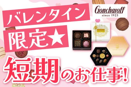 その他 未経験OK、主婦・主夫歓迎、短期OK、週4日以上OK、時間や曜日、シフト制、交通費支給、副業OK、駅チカ・駅ナカ、扶養内勤務可、バレンタイン限定 【ブランド名】 ゴンチャロフ 【事業内容】 1923年創業の総合洋菓子メーカー