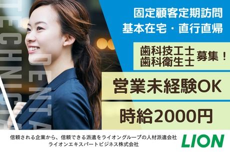 仕事内容 【お仕事の内容】 関西エリアの大型歯科技工所(約20社)を定期的に訪問し、 既存の取引先との関係性を深めていただくお仕事です。 新規開拓や押し売りのような営業ではなく、 現場目線に立った提案を通じて信頼を築いていくスタイルです。 【業務内容】 ・技工機器や技工材料に関する提案 ・製造工程の効率化や材料費管理、コスト最適化のための改善提案 ・技工所ごとのニーズに合わせたコミュニケーションとアドバイス ★営業ノルマに追われることはなく、自分のペースでじっくりと業務に取り組めます。 業務に慣れてきたら、自己スケジュールで直行直帰型の勤務が可能となります。 ※入社後1か月程度は研修のため出社勤務、 その後は月に数回のオフィス出勤以外は基本的に在宅勤務・直行直帰 ★スケジュール管理は個人裁量が大きく、柔軟な働き方が可能です 【お仕事のポイント】 飛び込み営業や新規開拓はなくすでにリスト化された 固定のクライアントへの定期フォローがメインでノルマに縛られることもありません。 また営業未経験の方でも訪問に関する不安がないよう、 研修では訪問方法、話の進め方まで丁寧にレクチャーしますので 不安なくお仕事を開始できます。 取り扱うのは、歯科技工業界でニーズの高い機器や材料であり、 製造プロセスの改善やコスト削減のアドバイスなど、専門知識を活かした 「課題解決型」の提案営業が中心。 現場を知る歯科技工士だからこそできるきめ細やかな提案が、 クライアントからの信頼につながります。 「歯科技工士の資格を活かして、新しい形で社会とつながりたい」 「専門性を活かしながら、営業やコンサルティングにもチャレンジしてみたい」 と考えている方にぴったりの求人です。 【営業のおすすめポイント】 勤務スタイルが柔軟で、研修後は直行直帰・在宅勤務が基本となるため、 自分のペースで働きながら営業スキルを習得できる環境が整っています。 さらに、有名企業とのプロジェクトに関わることで、 キャリアの幅を広げるチャンスや市場価値の高いスキルを身につけることも可能です。 「営業」と聞くとハードルが高く感じるかもしれませんが、 本ポジションは歯科技工士としての実務経験がある方こそ活躍できる、 専門職×営業のハイブリッドなキャリア。 将来性のある働き方を目指したい方に、ぜひおすすめしたいお仕事です。 【ライオングループの専門性を活かして派遣が初めての方も安心してスタートができる!】 ライオン株式会社のグループ会社として、安心・安定した環境をご提供しています。 オーラルケアや衛生管理に強みを持つライオンならではの知見を活かし、 歯科衛生士・歯科技工士の方々に向けた専門性の高い人材派遣・紹介サービスを展開。 臨床だけでなく、企業での活躍を目指す方にも多数の紹介実績があり、 就業前後の丁寧なフォロー体制で、企業と働く人の双方に寄り添います。 オンライン面談やLINEでのサポート体制も整っており、派遣登録から就業まで安心してご相談いただけます。 あなたに合った、質の高い働き方を、ライオングループがしっかりサポートします。