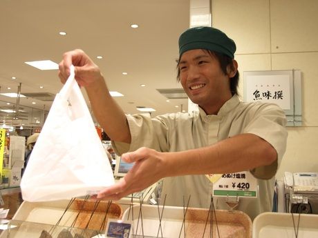 仕事内容 厳選された旬の素材の良さを最大限に活かす方法で調理!富惣の「おもい」をお客様に伝えてください。 お客様へ提供する商品の「最終仕上げ」となる調理を担当していただきます。本部の職人さんが、心を込めて仕込んだ材料が毎日お店に届くので、魚をさばく作業は有りません。店内の厨房で焼く、煮る、揚げる等の調理をお願いします。 経験がなくても料理に興味がある人ならOKです。調理経験のある40代、50代、60代も活躍中!! 「見た目だけだと魚の種類が分からない」「厨房に立つのが初めて」という方も大丈夫!分からないことは先輩にすぐ聞けるので安心してくださいね。丁寧に教えていきますよ。 モットーは「日々変化のある店づくり」!本部に対してオリジナルの意見を積極的に提案している先輩も。 料理好きなスタッフも多く、「お客様の食卓での笑顔を想像すると、ますます気持ちがこもります」と語ってくれた方もいます。意欲的に取り組んでいる先輩が多いんですよ。 披露しないなんてもったいない!家事スキルを活かしたい、調理スキルを磨いて私生活に活かしたい方はぜひ! 「魚をきれいに食べられる人」はそれだけでも好印象!さらに「魚を上手に調理できる人」になれたら?毎日の料理のレパートリーが増え、いろんな人に食べてもらいたくなりますよ。 素材選びから調理法までこだわる!健康的な食生活を演出するために「適材適処理」を大事にしています。 「お客様の美味しいというお声が聞きたくて」をコンセプトに、東京ほか全国約50ヶ所の百貨店で魚惣菜専門店を展開!魚料理のプロとして、長年蓄積してきたノウハウを伝授します。