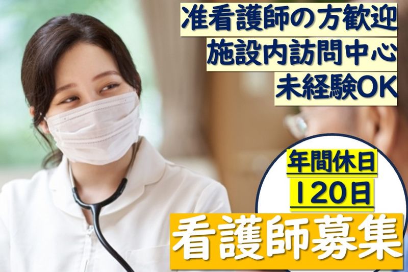 【アピールポイント】 住宅型有料老人ホームでの訪問看護師を募集します! ■施設内訪問中心! ■年齢不問! ■未経験OK! ■ブランクOK! ■准看護師の方歓迎!