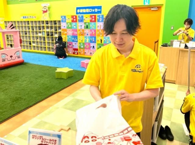 仕事情報 ● 仕事内容 お客様の入場の受付やご案内、実際に施設内でお子様と一緒に遊んだり、お子様が安全に遊べるように遊具の点検や清掃などを行います。 未経験の方でも、先輩スタッフがしっかりサポートしますのでご安心ください。 お客様の楽しく幸せな思い出作りをお手伝い♪ どんなところ? しんちゃんのゆめの世界!?どんな夢をみているのかな?「クレヨンしんちゃん」の室内型こどものあそび場です。 チョコビの大きな遊具や、キリンのすべり台、しんちゃんのおしりで飛び跳ねるトランポリンなど、しんちゃんの見てる夢の中のような遊びがもりだくさん!な施設です。 接客スキルが身に付く 接客がメインの仕事になります。経験がなくても、言葉遣いやマナーまで全て研修で教えますので安心してください。お客様との触れ合いを楽しみながら、一生役立つ接客スキルやコミュニケーション力を身に付けることができます。 ”遊び”を追求する会社 バンダイナムコアミューズメントはゲームセンター、テーマパーク、イベントショップ、キッズ施設、キャラクター体験施設など、アミューズメント施設を全国で運営しています。お子様から大人まで、あらゆる年齢や地域の人々に楽しんでいただける“遊び”を提供しています。