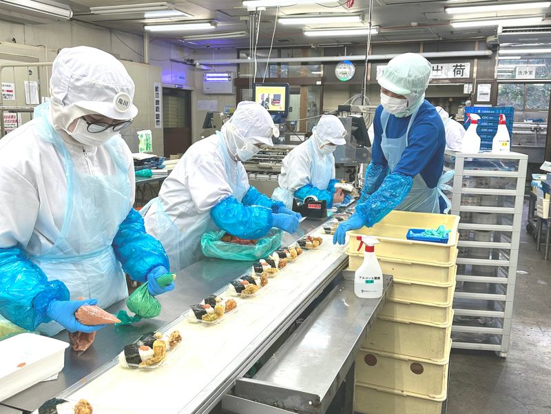 アピールメッセージ コンビニエンスストアのお弁当や調理パンを作る、食品製造工場です。ご飯を炊く、サンドイッチ用にパンの耳を切る、お弁当用のおかずを盛り付ける…各工程を分業しています。 当社は昭和55年創業、大手コンビニエンスストアのお弁当や、寿司・おにぎり・サンドイッチなどの製造を行っています。 補助作業からはじめ、試用期間中は2名体制の研修形式で先輩スタッフがレクチャー。 慣れてきたら様子をみて独り立ちとなります。 製造部門50名活躍中! 社員は4名、残りはアルバイト・パートスタッフの方が支えてくれています。外国の実習生を受け入れ、20代、30代の若手スタッフも増えてきました。 50代〜60代のベテランパートスタッフがお孫さんと接するかのように手取り足取り仕事を教えてくれ、工場内はとてもほのぼのとした雰囲気なんです。