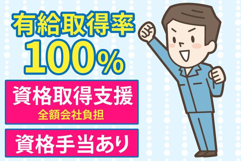 【保険制度】 雇用保険、労災保険、健康保険、厚生年金 待遇・福利厚生 【福利厚生】 ・社会保険完備 ・社用車通勤OK/直行直帰OK ・交通費支給(規定あり) ・制服貸与 ・夏場ドリンク支給 ・資格手当(1資格5,000円/月) *代表的な資格例 ◯給水装置工事主任技術者 ◯第二種電気主任技術者 ◯2級管工事施工管理技士 など ・資格取得費用は全額会社負担 ・転勤なし