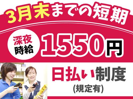 仕事内容 <夜勤のみ/未経験OK>接客なし!黙々作業が好きな方歓迎♪ コンビニや100円ショップ等で商品を数えて、 スマホサイズの端末に数を入力するお仕事。 この冬限定の稼働ボーナスあり! 初日出勤後5000円、5日出勤で5000円 計10,000円支給!(規定有) <具体的には…> (1)スマホサイズの端末で商品バーコードを読取 (2)商品の数をカウント (3)端末に数を入力 ★重たい荷物の移動なし 勤務先の店舗は… 100円ショップやコンビニ、スーパー、 アパレルショップ、 書店、ドラッグストア、 雑貨屋、ホームセンター、調剤薬局 など ※基本直行直帰 ※営業所から無料の送迎も有 ※勤務地は毎日異なります ※近隣の市区町村や隣県のお仕事もご案内可能。 1日の流れをご紹介 <作業先へ直行> ↓ <到着・作業> 任された範囲の商品を数えて端末に入力。 基本的に接客なしのコツコツ黙々軽作業。 頼りになるリーダーがいるので安心 ※休憩をはさみながら進めるので リフレッシュしながら作業可能 ↓ <直帰> ※駅チカ案件多数。営業所からの無料送迎も有 タイパ重視の方にオススメ!ココで働くメリット ■夜勤で効率よく稼げる ■週1日~OK!空いてる日にサクッと働ける ■日払いOKで急な出費に対応可 「今月ピンチ!!」「出費が…」なども大丈夫♪ ■接客なしの単純作業 すぐに慣れられる◎ ■学校以外で友達ができる ■応募~勤務開始決定までスマホだけで完了 こんな方が活躍中! ◆バイトが初めての方 ◆”遊び”や”趣味”に使うお金を稼ぎたい方 ◆夢や目標に向かって頑張っている方 ◆バイト仲間を作りたい方 ◆学校が休みの日だけ働く方 ◆子育てが一段落した方 ◆久しぶりの仕事復帰の方 ◆コツコツ黙々作業が好きな方 ★シンプル作業&サポート体制ばっちり◎ 棚卸未経験&ブランクある方も安心