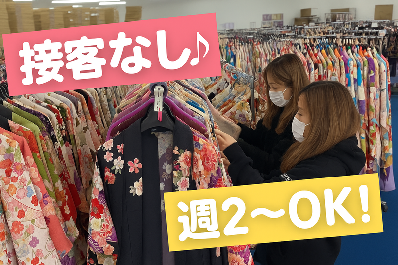 仕事内容 -<アピールポイント>- ✅ 夜勤なし!長期安定勤務OK ✅ フルタイム勤務・週2~OK! 安定して稼げます! ✅ 平日のみ・土日のみ相談可 ✅ 未経験・ブランク歓迎 ✅ 女性活躍中!主婦・ミドル世代多数 ✅ 髪型・ネイル自由!ピアスもOK ✅ 車・バイク・自転車通勤OK ✅ 丁寧な研修あり&フォロー体制も万全 - <仕事内容> ・着物や袴の整理・チェック ・商品(着物)の在庫管理 ・出荷準備(袋詰め・梱包など) ・台車での商品の移動 ・簡単なPC入力・伝票整理(経験不問) 着物の入った箱を台車で移動させたり 体を動かす仕事がメインです。 力仕事は少なく、未経験の方も安心してスタートできます♪ - 職場は静かで、落ち着いた雰囲気です。 おしゃべりが好きな方も、 黙々と作業に集中したい方も、 どちらも自然に馴染める環境ですよ♪ 「話すのがちょっと苦手…」 という方もご安心ください。 ⏩実際にこんな方が活躍中です⏩ ・黙々と作業に集中したい方 ・人間関係のストレスを避けたい方 ・接客が苦手な方 気疲れせずに働けるので、 長く続けやすいお仕事です◎ -