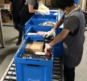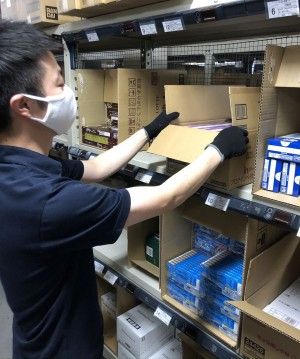 コンビニ配送センターで商品をピッキングします。その後、棚に商品を補充します