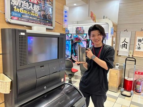 仕事内容 【女性スタッフ活躍中】全時間帯で募集中!イメチェンも楽しめるパチンコ店です☆ パチンコ店でホールのお仕事をお任せします! ●接客対応 ●店内の案内 ●ドリンクやタバコのお届け 主な接客対応としては スロットは…メダル補充や詰まりの解消 パチンコは…玉詰まりの改善 になります。 対応の種類が決まっていて覚えやすいですし イレギュラー対応でも、 インカムで社員やリーダーに頼れるので安心です! 【ポイント】 ●重い玉運びなし 自動で玉を計算してくれる台を導入しており、 力仕事はありません。 ●研修もしっかりやります まずはパチンコやスロット台の仕組みから。 バックヤードで実際の台に触りながら学び、 店舗で先輩の対応を見ながら実践。 対処に関するアドバイスももらえて安心です。 ★女性スタッフ活躍中★ 「パチンコ、パチスロって何?」 そんな方でも安心してください! 充実の研修制度で あなたをしっかりサポートします♪ パチンコ未経験でも安心してスタートできます◎ Q.パチンコ店に行ったことがなくても働ける? A.研修+先輩からのサポートがあるのでご安心を! パチンコの遊技の仕方や手入れ方法を学んでから店頭に立つため、 知識ゼロでもOK。9割近いスタッフが未経験からのスタートです。 お店に出てからも先輩が気にかけて アドバイスやフィードバックをしてくれるので大丈夫ですよ! Q.専門知識が多そうなイメージがあるけど大丈夫? A.実は、覚えていただく対応は3パターンほど。 別途勉強していただく必要はありません! お客様対応は、パチンコ玉詰まりの改善や スロットで用いるメダルの補充や詰まりの解消が大半。 多種多様な対応パターンを覚える必要がないため 学生やWワーカーなど、学業や他の仕事と両立して 働いている方も多いんです。 Q.急なアクシデントに対応できる自信がないです... A.インカムでヘルプを出せばすぐに社員が駆けつけます! 社員は常時1~3名はいるほか、店内も3~5名で巡回中。 全員が携帯しているインカムで助けを呼べば 誰かがすぐ来てくれる職場環境となっています。