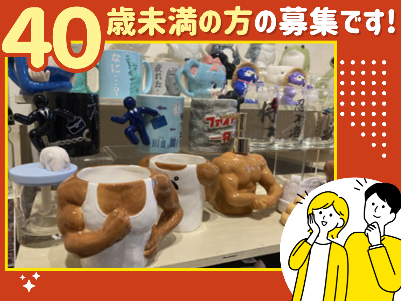 求めている人材 <必須条件> ・40歳未満の方(長期キャリア形成) しっかり育成していきます!未経験大歓迎 <歓迎条件> ・顧客折衝の経験がある方 (営業・販売・接客など/業界不問) 【 このような方特に歓迎します! 】 *インテリアやデザインに興味のある *楽しく明るい対応ができる方 *意欲的・前向きに業務に取り組める方 *コミュニケーション能力に自信のある方 *お客様と0から商品を作り上げることに 興味がある方 *営業経験者(業界不問) *販売・接客などサービス業の経験者 +………………………………………………+ \ 「こんなものを作りたい!」を形に! / サンアートの雑貨は ユーモアあふれる見た目から、 ・SNSでバズったり ・メディアに取り上げられたり ・著名人に紹介されたり ▶ やりがいにつながることがたくさん! 週1~2回ほど社内で定例会議を行っており、 そこでは「こんな商品を作りたい!」と スタッフ各々の想いを共有していきます。 みんなで意見を言い合える環境なので 働きやすさ抜群ですよ! +………………………………………………+ 年齢の条件と理由:あり(例外事由3号のイ・40歳未満(長期勤続によるキャリア形成のため))