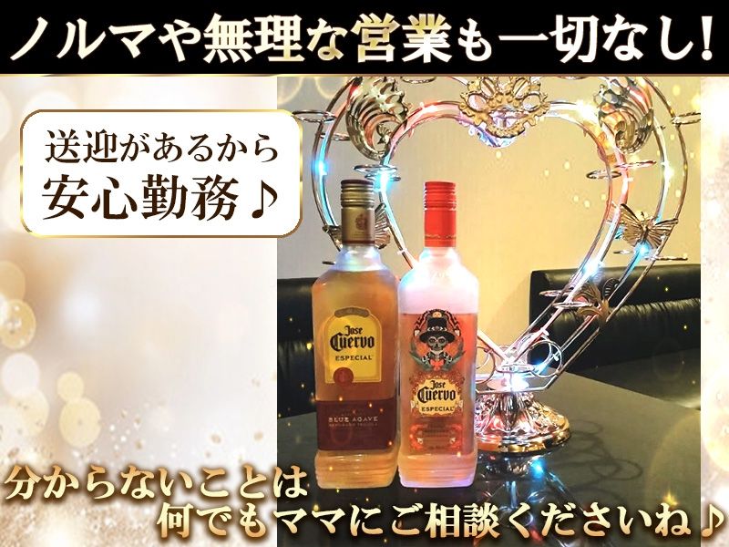 仕事内容 ●フロアレディ エリアでも働き易さが自慢です 簡単なママのお手伝いやお酒を作ったり、お客様と気軽にオシャベリしたり スタッフみんなで楽しい空間を作りましょう! 優しいママとアルバイトの女性だけのお店ですので 未経験の方でも気楽に働けます! 1対1での接客というよりはみんなで楽しくゆったり おしゃべりすることが多いです♪ ノルマや罰金、厳しいルール等女の子の負担になるものは一切ありません! 分からないことはママに何でもご相談ください ◆誰でも笑顔で「楽しんで働ける」環境をご用意 ◆服装はワンピースなどオシャレを楽しみつつ働けます ◆エリアでも特に客層が良く優雅な雰囲気! 【未経験でも安心の当店】 ■未経験大歓迎! ママがそばにいるので安心して働けますよ お仕事も丁寧に教えますので未経験でも安心♪ ■服装・髪色・髪型・ネイル・ピアス自由♪ 普段より少しお洒落程度でOK! 髪型やピアス、ネイルも自由♪ ■無理に飲めなくても大丈夫! お酒が飲めなくても、歌が苦手でもOK