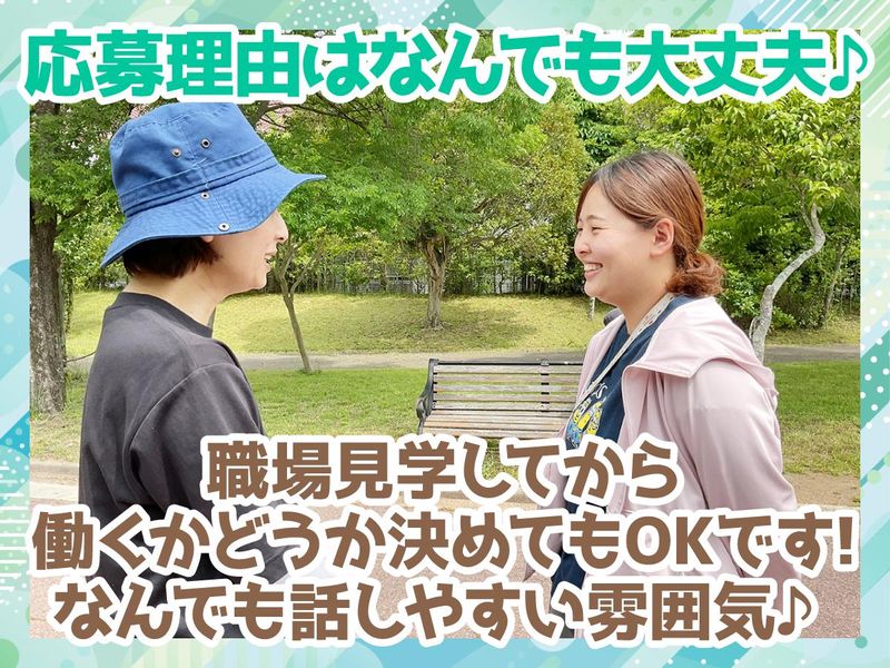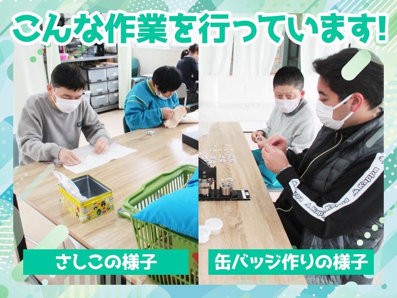 仕事内容 ★残業ゼロ!基本土日祝休み! ★賞与年2回!計4.2ヶ月分実績あり! ★障がい福祉の現場で“長期安定”! ★正社員へのステップアップも可能! 現在44名の利用者様が通う福祉施設で 生活や日中作業をサポートする 新しいスタッフを募集します。 - 1人で任せっきりは一切なし! チームケアで安心&始めやすいお仕事◎ - 当施設では、 【チーム力】が魅力の1つ! 利用者様への対応はもちろん、 スタッフ同士のコミュニケーションを重視し、 互いに助け合いながら業務に取り組んでいます。 利用者様8名に対し、 常にスタッフ2~3名体制で対応しています。 必ず複数名で業務を行うため、 困ったことがあればすぐに相談できる、 安心感のある職場です。 ▼他にも… <<始めやすく続けやすいポイント多数>> 福祉のお仕事が初めての方でも 無理なくスタートできて、 長く続けやすい環境が整っています。 その魅力を少しだけご紹介します♪ [ポイント①]未経験も挑戦しやすい - ★基本はルーティン作業 ┗業務の流れ等は同じなので 一度覚えたらスムーズに動けます。 ★15:30には利用者様は帰宅 ┗定時まで事務作業に集中可能。 通所施設なので夜勤もなし! 介護のお仕事が初めての方でも 慣れやすく、 身体的な負担も少なめで 安心してスタートできます◎ [ポイント②]私生活も満喫できる - 基本土日祝休みで年間休日は125日! 行事やイベントで土曜出勤を お願いすることがありますが、 必ず代休を取得。 生活リズムを安定させながら、 趣味などの時間も大切にできる環境です。 [ポイント③]自分らしいキャリア選択可能 - 毎年1月に正社員登用の機会があり、 希望すれば正社員にステップアップ! ゆくゆくは施設長や主任などの 役職も目指せます。 もちろん契約社員のままでもOK。 1年毎に自動更新されるため 基本的には同じ職場で働き続けられます。 [ポイント④]入社前からしっかりサポート - 不安なしで仕事を始められるように 気になっていることは何でもご相談下さい。 実際に職場見学してから 応募するか決めても構いません。 より詳しい仕事内容は 面接時に詳しく説明するので 「こんな業務があると思わなかった…」 と思うことがなく働き始められますよ。 - 【お仕事内容】 知的障害をお持ちの方へ 日中作業の支援及び 生活支援(食事等の介助)をお任せ。 下記記載の日中作業の際に、 利用者様をまとめたり、手助けしたり、 作業のチェックや見守りをメインに 行っていただきます。 ★具体的には… <屋内作業> ・自主生産(紙すき・手芸) ・下請け作業(缶バッジ作り) <室外作業> ・歩行活動、ドライブ、リサイクル(アルミ缶回収・空き缶つぶし)等 <日中活動> 音楽療法・各種外出・季節の行事など利用者さんのニーズに合わせた活動 ※昼食ではスタッフも利用者さんと一緒に おいしいごはんを食べて楽しんでいます。 ★入社後は… まずは、仕事の流れや 利用者様の顔・お名前を覚えつつ 仕事や職場の雰囲気に慣れていただきます。 ▼ 全体の流れをつかんできたら、 徐々に出来ることを増やしていきましょう。 声掛けのコツや注意点、 利用者様それぞれの特徴などを教えます。 ▼ その後資格取得も目指せます。 働きながらスキルアップし続けられる環境です!