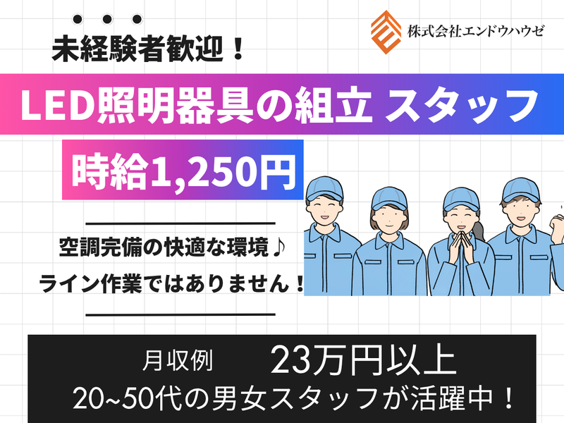 空調完備で快適♪|LED照明の組立|日勤×土日祝休み