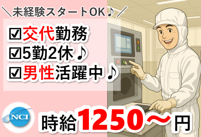 PR・職場情報 =====ここがポイント===== ■未経験で出来るオペレーターのお仕事! ■きれいな工場でのお仕事! ■20代~50代の方が多く活躍中! ==================== ◇NCIのここがオススメ!◇ ▼社会保険にすぐ入れる!▼ 入社日当日から加入できます♪ ▼サポートバツグン!▼ 一人ひとりのスタッフさんに 担当営業が付いて 就業を全力でサポート! ▼ほかにもたくさんの求人あり!▼ 実際にお話を聞いてみて 「何か違うな・・・」と 思うところがあれば 別のお仕事のご紹介も可能です! まずはお気軽にお電話 or フォームから ご応募ください♪ 求人の特徴 ■■■お仕事ポイント■■■ ≪工場、製造、マシン操作の お仕事をお探しの方オススメ≫ 〇PCやスマホに使われる 絶縁体シートを 製造する工場において 未経験でも活躍できる お仕事です! 〇PC・スマホに使用される 絶縁体シートに対して マシンを用いて 切断・計測・加工を行う カンタンもくもく作業! 〇基本的にはマシンの ボタンを操作するだけ! 作業自体は単純なものなので 資格も経験も一切必要なし! どなたでも活躍できる モクモク作業なんですよ!! 〇ライン作業ではありませんので 焦って作業を することはありません! 〇休日は土日休みなので 自分の時間をしっかり確保しながら お仕事することができちゃいます! 〇就業してからも当社営業スタッフが しっかりフォローしますので 派遣が初めての方や 未経験のお仕事に不安のある方も 安心してお勤めいただけます!! ===こんな方にオススメ=== ■経験がなくてもやれる作業希望! ■工場で働きたい! ■製造の経験を活かしたい! =================== 20代~50代の方が多く活躍中! お仕事についてのお問合せだけでも お気軽にどうぞ!! 【お仕事開始までの流れ】 1、まずはお気軽に下記応募フォームからご応募ください! 2、採用担当より追ってご連絡をいたしますので面談日時を調整します! 3、スタッフ登録を兼ねた面談と職場見学を行います! 4、入社が決まったら弊社事務所にて入社手続きを行います! 5、お仕事スタート!! ※平日18時以降の面談やオンライン対応も可能です。 ご希望の方は遠慮なくお問い合わせください! ご不明点等ございましたらお気軽にお問合せくださいませ。 - この求人以外に派遣・バイト・アルバイト・パートや軽作業、製造、事務のお仕事に興味のある方、短時間、短期・長期歓迎です。 白河市、西白河郡、東白川郡、石川郡、岩瀬郡、栃木那須エリアでお仕事をお探しの方、未経験、ハローワークでお探しの方もお問い合わせください。 - 〒961-0908 福島県白河市大手町12-1 駅前田部井ビル2階 株式会社 NCI 白河支店 電話番号:0120-744-555 (※お電話にてご応募の際は「求人サイトを見て」とお伝えください!) 一般労働者派遣事業許可番号:派07-300732 職業紹介事業許可番号:07-ユ-300310 求人ポイント シニア応援,社員登用あり,交通費支給,即日勤務OK,急募,主婦・主夫歓迎,長期,フリーター歓迎,バイク通勤OK,給料前払いOK,大量募集,学歴不問,車通勤OK,残業月20時間以内,転勤なし,未経験者歓迎,経験者歓迎,リモート面接OK,研修あり,社会保険完備,制服貸与,50代以上応募可,ブランクOK,育休制度あり,U・Iターン歓迎,家庭都合休OK,禁煙・分煙,長期休暇あり,40代以上応募可,第二新卒歓迎,履歴書不要,産休制度あり,友達と応募OK,留学生活躍中,週5からOK,産休・育休取得実績あり,変形労働時間制,固定時間制