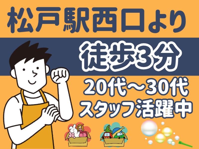 仕事内容 <◎おもちゃに囲まれて働ける◎> フィギュア・トレカ・ベビー用品など いろいろなおもちゃを扱うお店です! 毎日いろいろな商品が入荷するので 楽しみながら働けます♪ ⭐ここがポイント⭐ ✅ 松戸駅徒歩3分の駅チカ ✅ 週3日~OK! ✅ 昇格制度あり!頑張り次第で時給UP! ◆お仕事内容◆ おもちゃ専門のリユースショップで 店舗スタッフのお仕事をお任せします。 ・おもちゃの買取受付 ・商品の状態チェック ・おもちゃのクリーニング ・売り場づくり、商品陳列 ・レジ、接客 作業はシンプルなので 未経験でも安心してスタートできます◎ 実際に働いているスタッフも ほとんどが未経験から始めています! ⭐アニメ・ゲーム・トレカ フィギュア好きのスタッフも多数活躍中! ==================== おもちゃのリサイクル「トイプラネット」 2005年に創業し、現在グループ9店舗! ====================