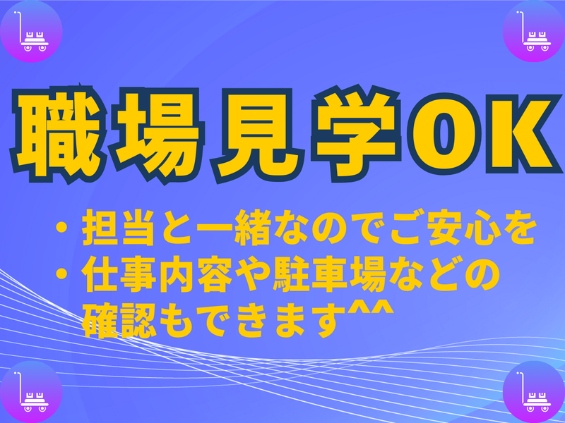 仕事内容 お仕事NO.2525 【仕事内容】 入庫した商品を台車を使用し 店舗ごとに仕分けるお仕事です。 【充実した福利厚生】 前払い制度・退職金制度・社会保険 など、多数の福利厚生をご用意して いるので安心して働くことが出来ますよ◎