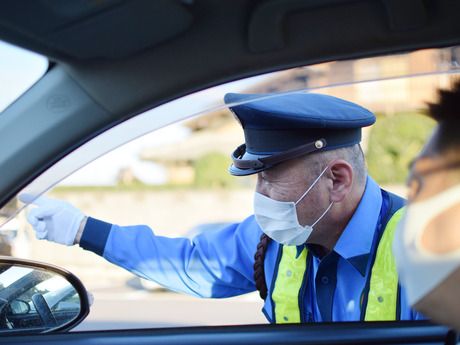 商業施設駐車場での歩行者・車両の誘導スタッフ
