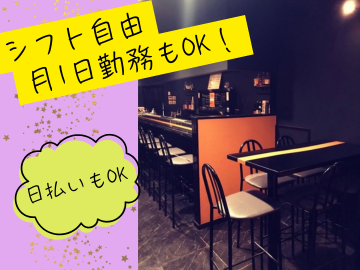 仕事内容 ママのお手伝いをして頂ける方を 募集します! <具体的には> ・簡単なお酒づくり ・お客様と楽しくおしゃべり など <当店で働くポイント> ①未経験の方歓迎♪ ②ノルマや細かいルールは一切なし! ③日払いで稼げる♪ ④月1日~OK♪シフト自由で働けます! <業界未経験でも歓迎!> 当店では、業界未経験でも歓迎! 活躍するスタッフも未経験で始めた 方が多いです!ナイトワーク経験が ある方は優遇いたします! <ノルマ・細かいルールは一切ナシ!> 当店は、売上のノルマや細かいルールは ございません!あなたのペースで楽しく 働いて頂けます! <稼ぎたい方にはピッタリ!> 当店は、日払いもOKです!(規定あり) また、あなたの頑張りは昇給随時でどんどんお給料アップ! 諸手当もございますので、稼ぎたい方には ピッタリのお店♪ <シフト自由で働けます> 月1日~OK♪ あなたの予定に合わせて働けます。 副業と両立したい、ガッツリ稼ぐなど 働き方も自由!面接で教えてくださいね! 年に数回だけ働くスタッフや、 終電を逃したから働きに来るスタッフもいます。笑