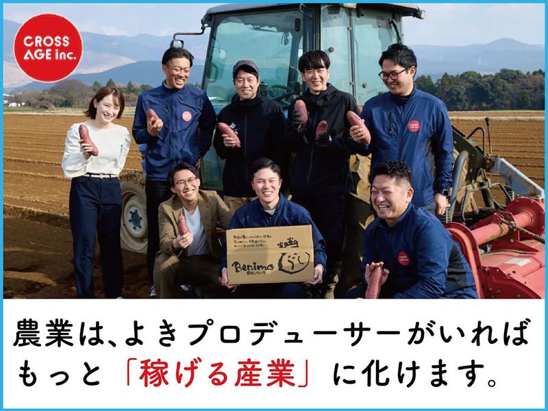 仕事内容 【スター農家を輩出する仕掛け人に!】 農家そのものの価値を高め、経済的にも 成功する「スター農家」をプロデュース! 手塩にかけて育てた農作物の 販路を開拓したり、 ブランディングや加工方法を考えたり 経営を支援したり… 私たちは地方創生や農業の支援を ボランティアや想いだけに終わらせません。 高齢化や担い手不足、海外との価格競争、 食糧自給率の低下など 日本の農業は多くの課題を抱えています。 「スター農家」が増えることで 農業への認識も変わり、価値もあがり、 多くの課題を解決に導くことができます。 そんな想いを持って活動する私たちの 仲間を募集します! -◇-■-◇-POINT-◇-■-◇- ✅未経験大歓迎! ✅農家の期待を背負い 使命感を持って動ける営業です! ✅地方創生にも直結し、 社会貢献できる。 ✅革命を起こすのは私たち! 農業を稼げる産業に! - 【お願いしたい仕事は?】 ◎流通プロデュース 契約している農家さんの 販路拡大を担います。 食料品卸会社やスーパー、 飲食店、食品加工工場などへ 営業活動をお願いします。 ◎生産者プロデュース 農家さんに生産状況などの現状を 随時お伺いしながら、 流通先で聞いた様々な声を フィードバック。 ◎商品プロデュース 農作物の付加価値を高めていくために 売り方、パッケージの方法、 ネーミングなども共に考えます。 - 【先輩社員の声】 取締役 流通営業グループマネージャー 商品プロデューサー 深谷 怜 2018年新卒入社 - (入社動機は?) 出身は秋田県なのですが、 就活の頃、新卒採用のサイトを見ると 地元の求人が驚くほど少なかった… 「これは仕事を作らないと!」 と考えていた中でこの会社を知りました。 当社の本社は福岡ですが、 地元・東北にも支社を構える予定があり その責任者候補として入社しました。 - (思い出のある仕事は?) ネギ農家さんのカットネギ工場の 立ち上げに関われたこと。 思い切った設備投資をしてもらったので 最初は心配でしたが、無事に軌道にのり、 東北で大きなシェアを握るまでに成長! 出逢った頃は1億円の売上だったのですが 時間はかかりましたが、 「売上5億円も視野に入った」という 報告をいただいた時には、やったぞ!という 気持ちと、嬉しい気持ちになれました。 地元東北で「スター農家」を輩出でき 恩返しできたような気がします。 - (社長はどんな人?) いつでも未来を見て、挑み続けているような人 「未来を描く力」がスゴくて 農家さんを勇気づけるビジョンが どんどん出てくるんです。話すたびに 新しい発想が出てくるのも刺激的です。 昔から上場を目指すと言っていましたが それに向けて会社の組織や仕組みも 整ってきています。 農業系のビジネスでしっかり儲かっていて 上場までしている例は多くありません。 私たちがその前例になれたら最高ですね。 - 流通営業グループ第1チーム チームリーダー 商品プロデューサー 山口 和洋 2017年中途入社 - (入社動機は?) 新卒で入社したのはラジオ局。 営業職でしたが自分でお店がしたくて 独立。バーや居酒屋など4店舗を 経営するところまでいきいました。 ですがあまりに忙しくて 家族との時間が持てなくて… お店は人に譲り、自分は会社勤めで 働く道を選びました。 - (農業と向き合う難しさ!) 扱うものが工業製品ではなく、 農家さんが育てる農作物です。 自然が相手だけに気候などで 一筋縄にいかないことも多いんです。 たとえば、扱ってくれるお店との 契約が取れたのに、肝心のモノがない! ということもありえます。 横の繋がりで、他の農家さんから 調達できることもありますが 時には事情をお伝えして、 お詫びに伺うことも… そういうタフさも求められる仕事です。 - (思い出に残っている仕事は?) とある年末、契約して間もない ニラ農家さんから「出荷できない」と 連絡があり、会社のみんなに相談。 最終的には 「みんなでニラを収穫にいくぞ!」 と一致団結して営業みんなで 1週間くらい畑仕事に明け暮れ、 どうにか乗り越えました。 冬の寒い中での かなりの重労働でしたが 今振り返れば素敵な思い出です。 その農家さんも今は 順調に成長を続けています! - 流通営業グループ第2チーム チームリーダー 商品プロデューサー 草野 空太郎 2018年入社 - (入社動機は?) 高3の頃、TPP問題をニュースで見て 日本の食糧自給率の低さを知り、 農業に興味を持ち、農学部へ進学。 クロスエイジの事業に感銘を受け 「いろんな農家に関わり、 日本の農業に貢献したい!」 と第一志望で入社しました! - (心掛けていることは?) 農家さんの商品を一品でも 多く売ることですね。 単価アップを考えたり、少しでも 利益が出るように考えています。 特に初めておつきあいする農家さんは 油断すると赤字でも回すクセが 染み付いている場合もあるので、 それではダメだとしっかり伝えます。 一緒にブランディングしながら 売値を2倍にあげることも可能! 秘訣はトコトン思考すること。 「このそら豆は焼くだけでもおいし
