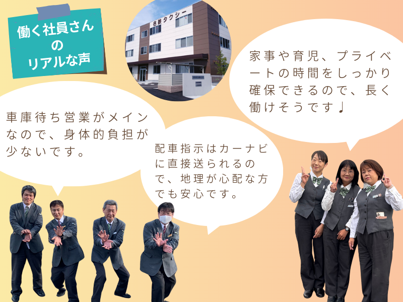 仕事内容 ✨完全未経験からデビューする方多数✨ \なぜ名鉄西部交通が選ばれるのか?/ ✅年収700万以上も可能 ✅今だけ入社祝い金あり ✅選べる勤務体系! ✅未経験から会社負担で二種免許取得が可能◎ ✅3か月間給与最低保証28万円♪ ✅中途入社の多くが未経験スタート! ✨高収入 × ワークライフバランス、両方叶えたいアナタへ!✨ 意欲重視の採⽤です︕ 安定企業ならではの安心環境で、 ""しっかり休んで” ""しっかり稼ぐ” を実現しませんか? 業界・職種未経験 or ブランクがあっても大丈夫! 少しでも気になった方はぜひ応募してみてくださいね(^^) ✨✨✨✨✨✨✨✨✨✨✨✨✨✨ \\働く社員さんの声をご紹介// 【稼ぎやすい時間帯です!】 「深夜のお客様は長距離移動が多く、 割増時間帯で効率的な営業が可能です。 稼ぎたい方にはぴったりの働き方です。 【身体的負担が少ないです!】 「車庫待ち営業がメインなので、 身体的負担が少なく、 配車指示はカーナビに直接送られるので、 地理が心配な方でも安心です。」 \\この求人のオススメポイント// 選ばれる理由ココにあり! ✅名鉄グループならではの安心感! ✅2種免許取得制度あり! ✅賞与あり(年2回) ✅インセンティブ制度 ✅各種手当 ✅社会保険完備 ======================= ★【名鉄グループならではの魅力✨】 ======================= ✅当グループは病院やホテルなど 様々な施設と契約していて、 タクシーチケットの会員数は 地域トップクラスです! つまり、仕事量が安定しています! ✅名鉄西部交通が待機できる乗り場は たくさんございます! <下記一例> ・名古屋鉄道の主要駅 一宮駅、稲沢駅、国府宮駅、 犬山駅、江南駅、西春駅 など ・商業施設 イオン、アピタ、ドン・キホーテ、ピアゴ など ・ 病院 江南厚生病院、徳洲会病院、 一宮西病院、春日井市民病院 など 他多数 ✨新人保障給有(月額28万円※3ヶ月間 規定あり)✨ ======================= ★【ドライバーデビューまでの流れ】 ======================= ⭐AT限定免許の方も全然OK⭐ <配属前> 【1】自動車学校へGO!費用全額会社負担 提携自動車学校で 第二種免許取得から開始します。 ↓ 教程は約9日間で終了し、 最終日の卒業検定は 自動車学校にて実施します。 ※通学中は1日12,000円を支給します! ↓ 卒業後は免許センターで 第二種免許試験を受験します。 ↓ 合格(次のSTEP へ) -------------------- 【2】教育センターへGO! 第二種免許取得後は、教育センターで タクシー乗務に必要な研修を受講します。 -------------------- 【3】いざ実地訓練へ! 横乗り研修を開始し、先輩と2人で 接客の練習を行います。 ↓ 上長や先輩と会議室で 横乗り研修の振り返り (フォローアップ)を行います。 ↓ 乗務の悩みや不安などが全て解消されたら 準備万端! タクシードライバーデビューとなります! °˖°˖✧°˖✧✧°˖✧°˖✧°˖✧°˖✧°˖✧°˖✧°˖✧°˖✧°˖✧°˖✧ ✅入社祝い金支給✨ ▼今だけ▼ 今回の掲載期間中に ご応募頂いた方にもれなく 入社祝い金【3万円】を支給!! ※支給要件規定有 ◎皆さんが稼げる/稼ぎやすい環境が 整っています! あなたも安心・安定して働ける 名鉄グループの一員になりませんか?