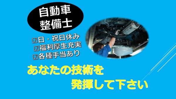仕事内容 ━━━━━━━━━━━━━━━━━━━ 応募フォームの入力がめんどうという方へ ━━━━━━━━━━━━━━━━━━━ お電話でのお問合せも受け付けています! ■TEL:099-226-5454(9-17時) お気軽にお電話ください(^_-)-☆ 【仕事内容】 アフターメンテナンスや車検整備など整備事業全般。 リースメンテナンス車両、個人顧客の車両がメインです。 営業はありません! 将来は検査員や工場長、部門長等へもステップアップが可能です! ★資格取得も会社がバックアップ! ★定期的なスキルアップ研修も参加中! 福岡や大阪、愛知県まで出張研修もあります。 ★最新のコンピューター診断機やリフト10機をそろえており、設備も充実です! スキャンツールや整備予約システムを導入し、整備状況の把握も行っています。 ★完全予約制が基本の為、突発的な業務はほぼありません!