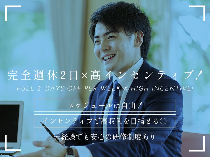 仕事内容 ‥┈┈┈┈┈┈┈┈┈┈┈┈‥ 時間配分は自由に調整可能! インセンティブで給与UP♪ 【保険営業スタッフ】募集〇 ‥┈┈┈┈┈┈┈┈┈┈┈┈‥ \働くうえでのポイントは?/ ☑朝夕事務所に寄る以外の時間配分自由! ☑歩合給で実力をしっかり評価〇 ☑土日祝休み!プライベートも充実♪ ☑地域密着型で信頼される保険代理店! <仕事内容> 損害保険・生命保険の新規募集、 既存契約者の更新管理をお任せします。 【 ゼロから成長しよう! 】 教育体制が充実しているため、 初めての方も安心して働けます。 わからないことはなんでも相談OK!
