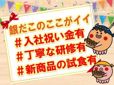 仕事内容 / 「銀だこ」は初バイト大歓迎!新入生にもおススメ! 全国チェーン店ならではの丁寧な研修もあります✨ \ 「ぜったいうまい!! たこ焼」でお馴染み! 銀だこホクレン新発寒店がリニューアルOPEN!! 新しくなった銀だこで新メンバーを大募集✨ さらに今だけ!新生活&初バイト応援企画! 入社祝い金1万円を支給中! アルバイトが決まって臨時収入もゲット⭐ お得に&気軽にお仕事を始めてみませんか? ー 「アルバイトの経験が無いし・・・」 「たこ焼き作るのって難しいよね・・・?」 そんな心配は一切ナシ✨先輩が優しく教えます! そして実は銀だこのお仕事は、 一度覚えれば簡単なルーティーンワークなんです! 研修でしっかりとお仕事を覚えれば、 誰でも大活躍間違いナシです⭐ 【具体的なお仕事内容は】 ・注文受付 ・お会計 ・商品お渡し ・たこ焼き作り ・簡単なトッピング など。 慣れてきたら「たこ焼き作り」にも挑戦! 慣れればクルクル~っとすぐにできちゃいます! コツさえ掴めば、楽しい作業です! たこやき作りは簡単なトッピング作業から! ソースをぬって、青のりをかけて、 レジの人にたこ焼きをパス! どのお仕事もあなたのペースに合わせて徐々にお任せするので、 飲食・接客未経験者さんでも安心スタートできますよ! 商品の種類も少なく、すぐ覚えられるのもポイントです。 <新作たこ焼きの試食あり> 銀だこファン必見の特典! 発売前にお店の味が知れるレアチャンス! お客様にオススメをするための大事な「仕事」です!(笑) / スタッフインタビュー \ 『家から近くて通いやすい』が志望動機です(笑)。 商品数は少なく、難しい作業はないので、 一度覚えてしまえば同じことの繰り返しで意外と簡単です! by.学生のKさん