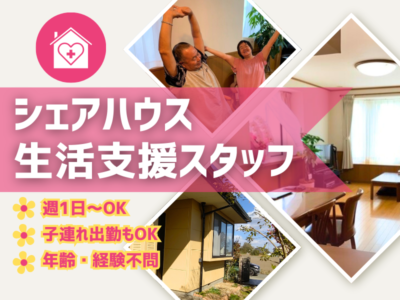 仕事内容 \✨2025年NEW OPEN✨/ 高崎市内にシェアハウス新設のため スタッフ増員募集します ❁•❁•❁•❁•❁•❁•❁•❁•❁•❁•❁•❁ ★お子さま連れでの出勤もOK ★無資格・未経験の方も大歓迎! ★経験・年齢不問◎ ★Wワーク・扶養内の方も大歓迎! ❁•❁•❁•❁•❁•❁•❁•❁•❁•❁•❁•❁ ✅仕事内容は シェアハウスでの 生活支援・サポート業務を お願いします <主な業務内容> *料理、入浴、掃除、 レクリエーションなどの 生活サポート業務 *お買い物に行ったり、 誕生日会やご家族を招待する イベント企画など ■入居者様はお仕事をお持ちの 軽度障がい者の方になります。 ■入居者様の食事の準備や 掃除の支援などを 行っていただきます。 ※入浴・排泄介助などの 力仕事は一切ありません。 ■無資格・未経験の方もご安心下さい。 支援や介護の仕方から 丁寧にフォローいたします。 ■お子さま連れでの出勤もOKです! 事業所内で一緒に過ごせるので、 ご家庭をお持ちの方も 安心して働けます! ✅「シェアハウスクローバー」は、 軽度知的・精神障がい者専用 グループホーム(1棟/6名程度)です。 障がいをお持ちの方が 「社会から孤立、隔離されずに、地域とともに暮らしていく」、 「自分の力で、自分らしく生活していく」 ことを実現できるようサポートします。