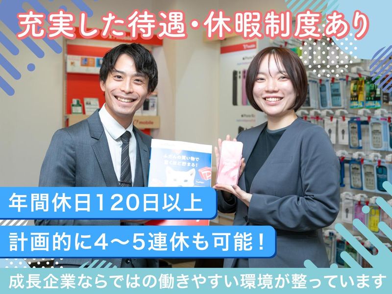 求めている人材 ☆携帯販売の経験者大歓迎! ✅第二新卒歓迎 ✅日本語能力試験N1合格者 または敬語・謙譲語の完璧な運用ができる方 <こんな方にピッタリな求人です> ✨ これまでの経験を活かして、もっと成長したい ✨ 提案の成果や数字を実感できる環境で働きたい ✨ 集客の多い店舗でスキルを磨きたい ✨ チームで協力しながら、自分の力を試したい ✨ 接客・営業でキャリアを築きたい ✨ 将来的に育成やマネジメントにも挑戦したい ✨ 仕事もプライベートも大切にしたい ー ▷在籍スタッフについて ー ✅20代~30代活躍中! ✅平均年齢29歳 ✅中途入社の先輩も多数 (中途社員比率8割以上) ✅女性活躍中! =============== *ブランク歓迎 *ブランクOK *無資格歓迎 *経験不問 *U・Iターン歓迎 *家電量販店
