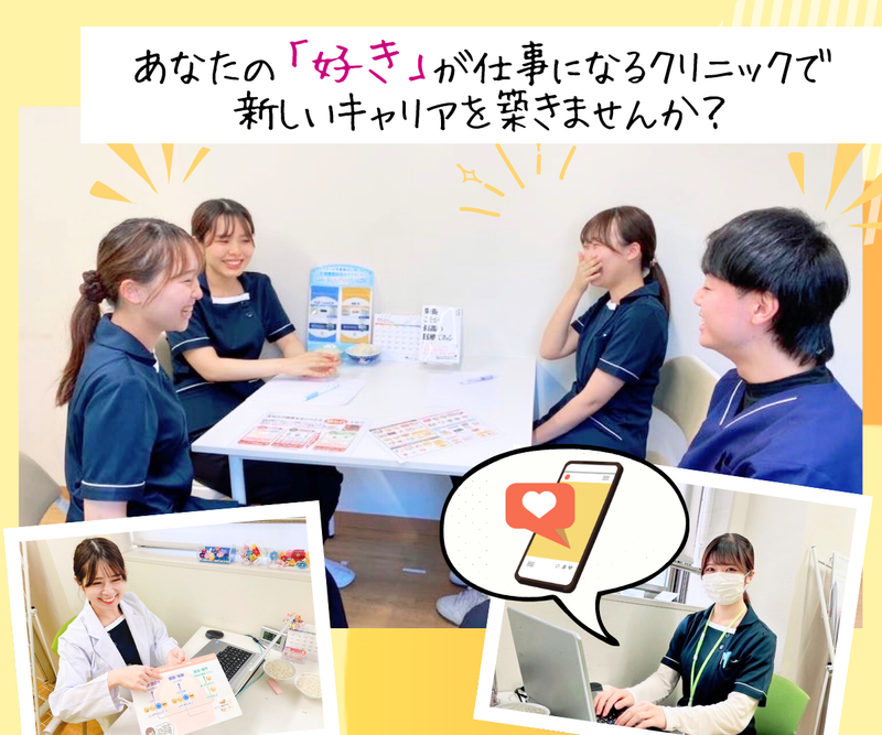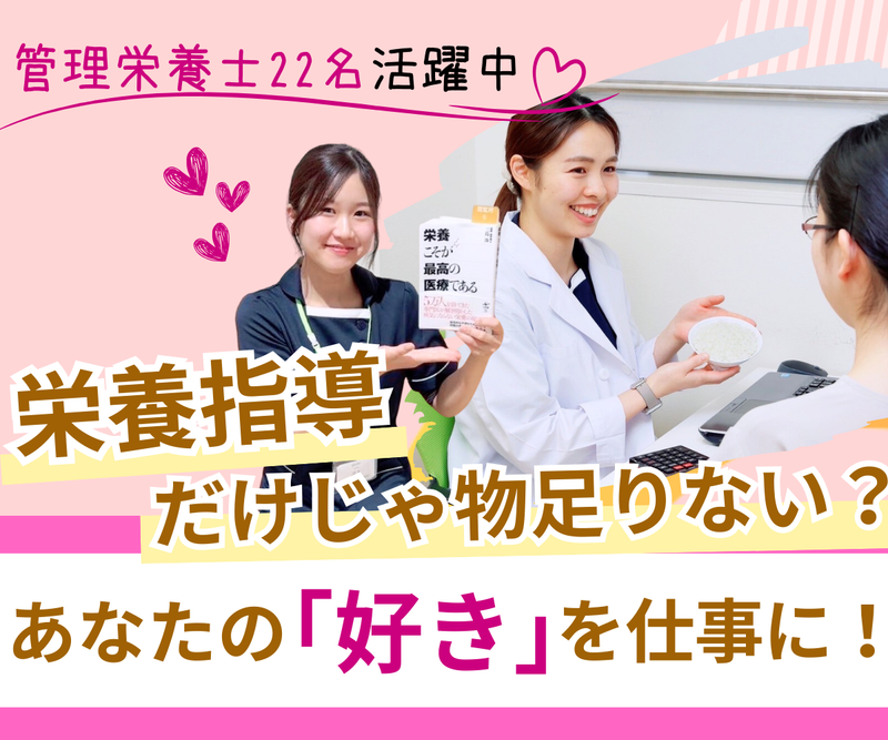 求めている人材 【必須資格】管理栄養士資格 ・経験が浅い方でも大丈夫!フォロー体制抜群の環境です! ・栄養指導・未経験OK! ・事務職・未経験OK! ・PCスキルは基本的な操作ができれば大丈夫♪ \\【こんな方にピッタリ!】// ・栄養+αの仕事に挑戦したい方 ・SNSが好き・情報発信に興味がある方 ・チームで働くことが好きな方 5年後10年後、自分はどのような状態ですか? 当院では一人一人が理想の自分になれるよう 3か月に1回の成長面談をはじめとし、 毎週の1on1面談で成長のサポートをしております。 栄養指導未経験でも安心してご応募ください。 「理想の自分」になれるよう成長をサポートします!