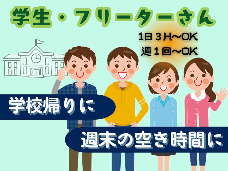 勤務時間詳細 9:00~22:00 ※週1日~・1日3h~OK ※平日のみOK!週末のみOK!