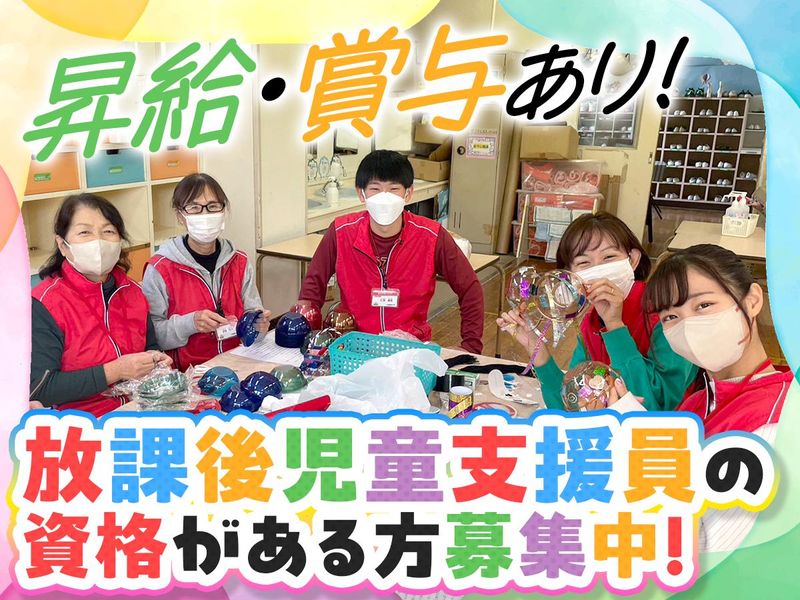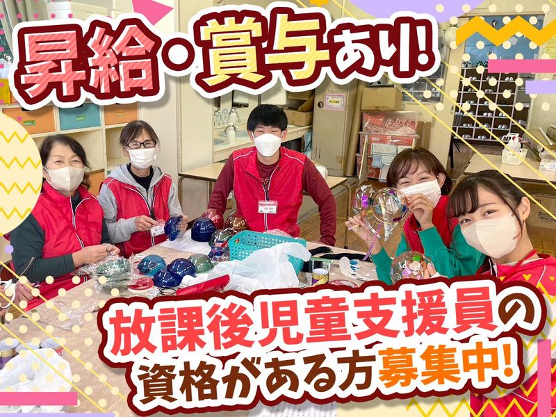 求めている人材 〈必須〉 ・放課後児童支援員認定資格をお持ちの方 ・PCで簡単な文字入力、データ入力ができる方 ■学歴不問 ■ブランクのある方も歓迎 ■以下のような方を歓迎! ・子どもたちと積極的に関わりながら、毎日を楽しめる方 ・新しいチャレンジを前向きに楽しめる方 ・思いついたアイデアを実行に移せる行動力のある方 ・子どもたちと一緒にリアクションし、共に盛り上がれる方 ■以下の資格・免許をお持ちの方は、なお歓迎! ・保育士 ・社会福祉士 ・教員免許 年齢の条件と理由:あり(例外事由1号・59歳以下(定年のため))