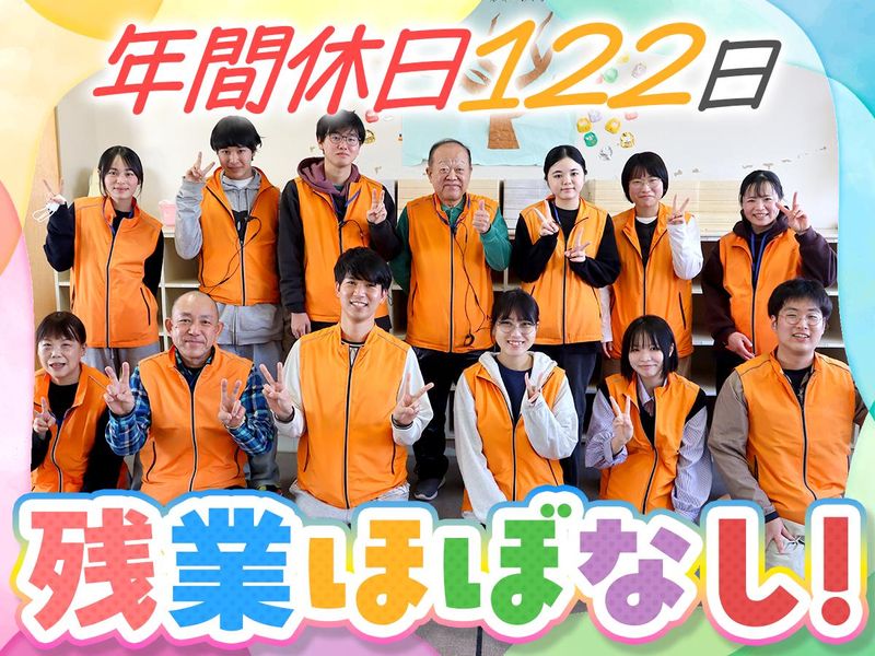 職場環境 若手職員からベテランの方まで、幅広い世代が活躍中。 子どもたちとはもちろん、職員同士も仲が良く、 困った時はすぐに相談ができる環境です◎ 職場全体で「一人で抱え込まない」体制を 大切にしています! 喫煙所:なし(敷地内全て禁煙)