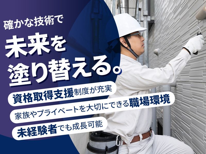 仕事内容 +++++++++++++++++++++++++ ✨未経験大歓迎✨ ✨子育てパパ・若手活躍中✨ 家族との時間を大事にしたい••• プライベートを充実させたい••• そんな希望、叶えます! +++++++++++++++++++++++++ …求人のPOINT………………………… ✅未経験から挑戦可能〇手に職を! ✅家族優先の職場✨仕事も調整可能! ✅基本残業ナシ!終業後の時間も充実〇 ✅施工管理へのキャリアアップも叶う♪ …………………………………………… < 仕事内容 > 主に分譲マンションや集合住宅の **「大規模修繕工事」**における、 建物のメンテナンス作業をお任せします。 【未経験者も安心!最初はここからスタート】 特別な知識は不要です。 入社後まずは、先輩社員と一緒に現場に入り、 下記のような簡単な補助業務から始めましょう。 ・道具、資材の準備や運搬 ・現場の清掃や片付け ・先輩のサポート(塗料を混ぜる、資材を渡すなど) ▽慣れてきたら挑戦する具体的な作業 チームの一員として、少しずつ専門的な作業をお任せします。 ・壁の補修(小さなひび割れの修正) ・塗装工事(ローラーを使った壁や天井へのペンキ塗り) ・防水工事(水漏れを防ぐための特殊なシートや塗料の施工) *基本は分譲マンションがほとんど *作業は2~3名のチーム体制 常に先輩がそばにいるのでご安心ください!