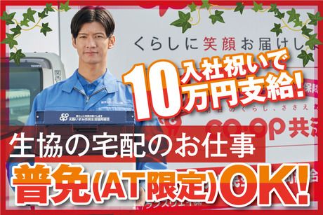 仕事内容 ●おなじみの生協の宅配ドライバーのオシゴトです!再配送で何度も配達することはありません。 1.5t~2tトラックに積み込んだ生協の商品(冷凍・冷蔵・常温・食品・雑貨など)を、 午前・午後に分けて担当エリアのお客様のもとに配送します。 決まったルートでのお仕事なので 毎回地図やナビを確認しながら向かう心配もありません。 またお客様が不在の場合は玄関や指定先などに商品を置いて 次に向かうので再配達もありません。 ●未経験OK!人と接する仕事の経験なども活かせます! 基本的にはお客様に商品を直接お渡しするので、 その際に新商品のご案内をすることや 別の商品のご依頼をいただくこともあります。 そのため人と接する仕事の経験があれば活かせます。 もちろん未経験でも普通免許があればOK! トラックは小型でバックカメラも付いているので 普段から車の運転をしている方ならスグに慣れていただけます ●長く続けやすい日勤専属のお仕事です。 勤務時間は8時~17時なので、お子さまがいらっしゃる方なら 学校帰りのお子さんと一緒に食事をとることもできます。 夜勤などは一切ないので勤務リズムも安定。 基本的に土日が休みの仕事なので プライベートや家族との予定も組みやすい勤務だと思います。 ●初めての就職や転職も大歓迎!20~30代を中心に幅広い年代のスタッフが活躍中の職場です。 今回募集する配送ドライバーは経験がなくても大丈夫! そのため採用においては、人柄や気持ちを重視します。 「これから長く頑張っていきたい」その気持ちがあればOK! 長く一緒に頑張っていただける方を積極的に採用したいと思っています。 ●関西トランスウェイ株式会社について 当社では大手外食チェーン店や大学・病院などに特化した物流サービスを提供しています。 未経験や資格をお持ちでない方もご安心ください。 現在活躍中のスタッフもほとんどが未経験スタート! 真面目に頑張れる方なら大歓迎します! 当社がバックアップする資格取得支援制度もありますので 資格と経験を積みながら成長することができます。