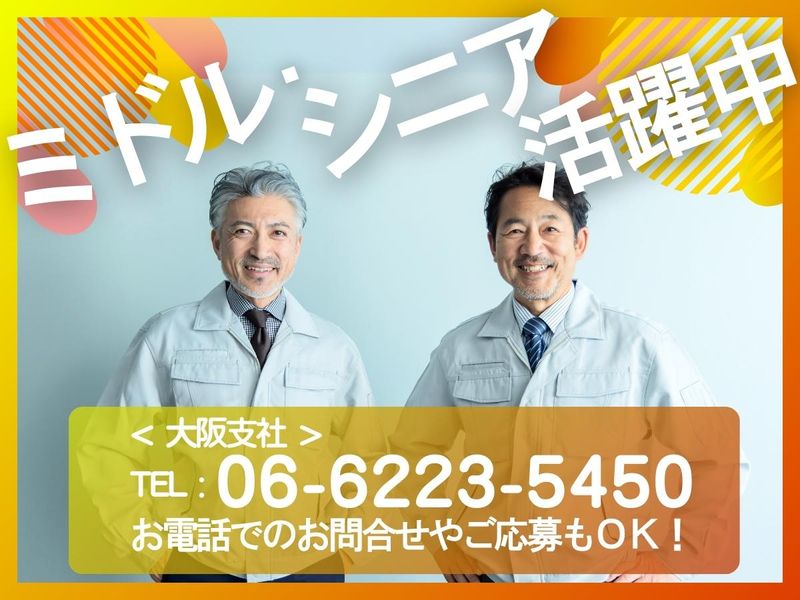選考プロセス <お電話での応募も大歓迎!> TEL:06-6223-5450 <応募後の流れ> 採用担当より ご連絡いたします。 ▼ 面接1回 ※履歴書をご持参ください。 ▼ 内定 ※即日勤務OK! ※面接日・入社日は相談に応じます。 ※応募書類はご返却できませんので、予めご了承ください。 ※ハローワークで求職中の方も歓迎