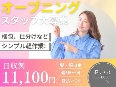 オープニング★あの世界的通販サイトの倉庫が9月にOPEN!#簡単作業#日払い#無料送迎有#週3日~