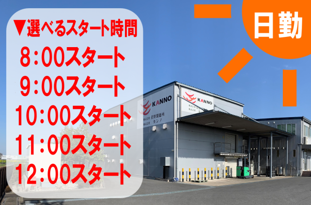 【倉庫内軽作業・清掃】未経験大歓迎!週3日~OK◎時給1300円以上!正社員登用あり! 株式会社カンノで【計量・積込・清掃】として働ける倉庫内軽作業のパートさん大募集! 8時スタートのお仕事ですが… スタート時間は、ご家庭の都合など、あなたの働き方に合わせてご相談ください! <ポイント!> ■土日祝は時給1625円! ■週3日~OK ■鍵付き個人ロッカーあり、食堂あり、昼食(1食108円) ■パートだけど、年2回の賞与あり ■勤務開始時間は、相談に応じます! ■正社員登用あり!