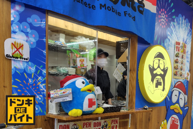 アピールメッセージ ドンペン焼きOPEN✨甘い系もおかず系もある!ホットスナック&ドリンクのフードコーナーOPEN✨ センター街側の入り口から入ってすぐ!未経験OK!外国人のお客様対応もあり、土日祝勤務可能な方は優先採用します。