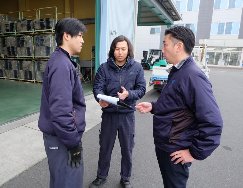 勤務時間詳細 実働時間:1日あたり8時間 平均勤務日数:1ヶ月あたり20日 〜 21日 就業時間/8:00~17:00(休憩60分) 【1日のスケジュール例】 8:00 - 始業 ・KYミーティング(危険予知)を実施。 ・使用する機械設備の点検作業を行う。 ・メーカーから入荷したコイル(鋼板)の荷降ろし。 8:30 - 生産開始 ・機械を使ってコイル(鋼板)を製品のサイズへカット。 ・カットした鋼板を当日出荷の屋根材や壁材に成型機を使い、加工する。 11:00 - 梱包・積み込み ・加工した屋根材や壁材をキズが付かないよう梱包を行う。 ・クレーンやフォークリフトを使い、梱包した製品をトラックに積み込む。 12:00 - 昼休憩 ・1時間ほどの休憩を取る。 13:00 - 午後の生産開始 ・午後も同様に成型加工を行う。 ・翌日以降の出荷製品の成型加工を行うことが多い。 16:00 - 梱包・積み込み ・加工した屋根材や壁材をキズが付かないよう梱包を行う。 ・クレーンやフォークリフトを使い、梱包した製品をトラックに積み込む。 16:45 - 機械設備の清掃 ・使用した機械設備の保守・清掃を行う。 17:00 - 業務終了・退勤