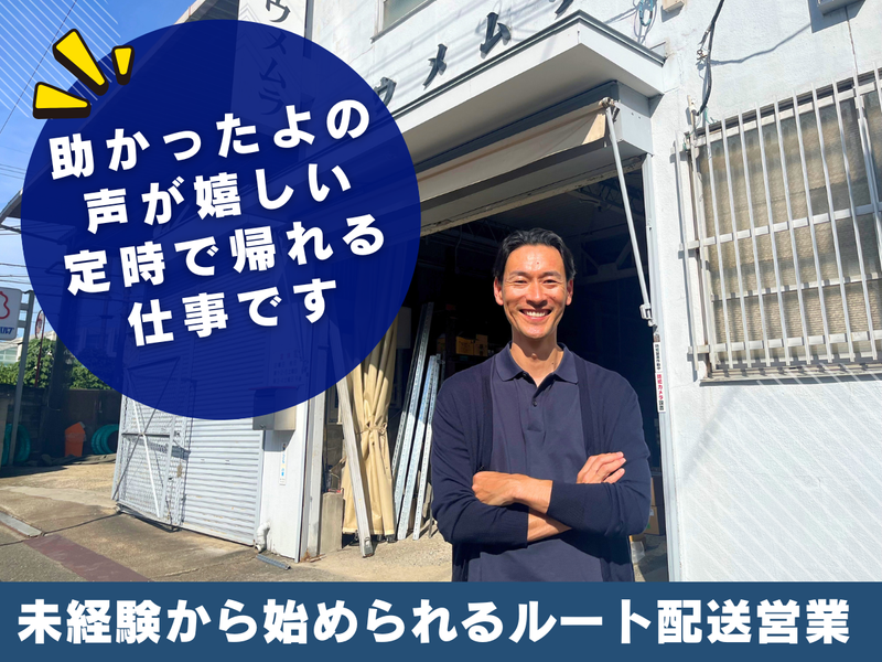 仕事内容 ✅営業未経験OK・安心の育成体制 ✅完全週休2日・土日祝休み ✅年2回賞与+決算手当もあり ✅ノルマ無し・飛ぶ込み営業ナシ __________________ 車で商品を配送することがメインの *★ ルート営業の仕事 ★*  ̄ ̄ ̄ ̄ ̄ ̄ ̄ ̄ ̄ ̄ ̄ ̄ ̄ ̄ ̄ ̄ ̄ ̄ 営業の基本はいたってシンプル。 取引先から電話・メールやFAXで 届く発注依頼に 自社倉庫や仕入れ先から商品を準備し 車でお届けします。 取扱商品は住宅設備機器など。 既存のお客様との時間を大切に しているので、長年お付き合いのある 企業ばかりで、温かく迎えていただけ ますよ。 <具体的には・・・> ・電話、メールやFAXで届いた 注文の確認 ・商品を準備して、車で配送 ・帰社後の伝票確認 ・倉庫作業の手伝い など ⭐焦らず自分のペースでOK  ̄ ̄V ̄ ̄ ̄ ̄ ̄ ̄ ̄ ̄ ̄ ̄ ̄ ̄ ̄ ̄ ̄ いきなりお客様とやり取りをすることは ありません。 まずは2~3年、先輩と一緒に配達や 倉庫内作業に同行しながら、 扱う商品を覚えるところから。 現場でどんな風に使われているかも 見ながら学べるので、自然と知識が 身に付きます。 じっくり丁寧に教えていくので、 焦らず自分のペースで仕事に慣れて いってくださいね。 ⭐選ばれる理由がある  ̄ ̄V ̄ ̄ ̄ ̄ ̄ ̄ ̄ ̄ ̄ ̄ ̄ ̄ ̄ ̄ ̄ 「ウメムラさんにお願いしたい!」 そんな声を現場から多くいただいて います。 「あ、この材料が足りない!」と いう場面はよくある話。 そんな時に重宝されるのが私たちです。 取引先によってはウチに頼むより 安いところもありますが、 「ウメムラさんの方が、早いし安心」と、 信頼されているからこそお任せ いただけます。現場に納品に行くと 「これがなかったら1日無駄に するところでした…」と感謝される ことも。 ⭐現場の支持率が高い  ̄ ̄V ̄ ̄ ̄ ̄ ̄ ̄ ̄ ̄ ̄ ̄ ̄ ̄ ̄ ̄ ̄ 工事が始まってから不足する資材は多く、 そんなときに1日2回の配送で柔軟に 対応してくれる、私たちは現場の 職人さんたちからの支持率が高い存在です。 「次もウメムラさんが良いって、 上にお願いしといたよ」 そんな言葉をいただけることも多く、 選ばれる実感を日々肌で感じられる仕事 です。 ⭐働く環境も良好◎  ̄ ̄V ̄ ̄ ̄ ̄ ̄ ̄ ̄ ̄ ̄ ̄ ̄ ̄ ̄ ̄ ̄ 働きやすい環境が整っています。 家庭持ちの営業さんも、 「子どもの行事など、 休みがとれ柔軟に対応できる」 と喜んでくれています。 請求書などの書類関係は事務さんに お願いでき、電話やメールが夜間に 来ることもありません。 完全週休2日(土日祝休み) 残業も月5時間程度と少なめで、 年間休日は120日以上。 メリハリをつけて働くことができます。