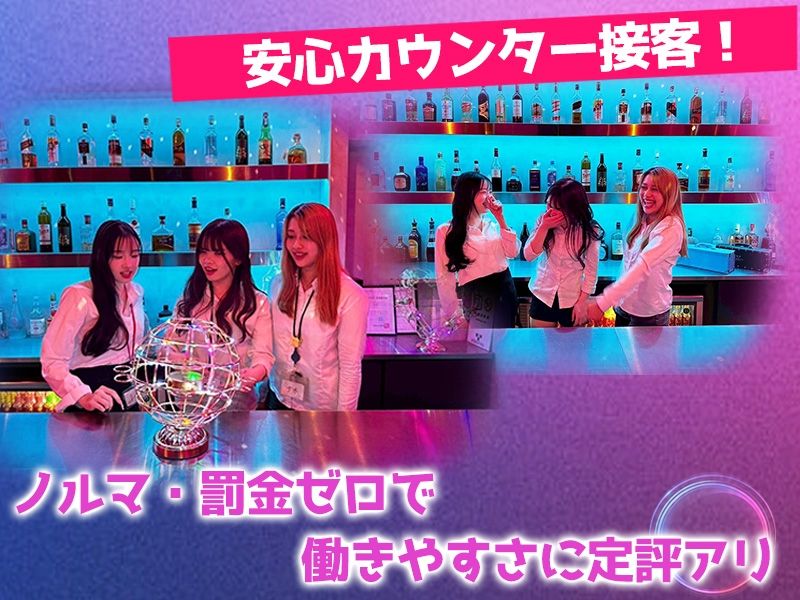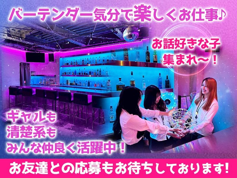 仕事内容 【お仕事内容】 カウンター越しにお客様とおしゃべりしながら、ドリンクを提供するシンプルなお仕事! ノルマや隣接接客は一切なしで、気楽に楽しく働けるのが魅力♪ ◆具体的には… ・ドリンク作り(簡単です) ・カウンター越しにお客様と会話 ・店内の簡単な清掃・準備 ・楽しい空間づくりに参加! 【経験者さんに選ばれる理由】 ◎ノルマ・罰金・営業強制ナシ! 数字に追われず、のびのびと“本来の接客”を楽しめます。 ◎ギャルも清楚系も、みんな仲良し! タイプもキャラもバラバラだけど、全員が本当に仲良し♪ ギスギスした上下関係や派閥は一切ありません! ◎高待遇×自由なシフト 「しっかり稼ぎたい」も「週1だけ働きたい」もOK! 自由さと安定感を両立できます。 ◎"疲れる夜職"にサヨナラ! 営業ノルマ、無理な同伴・アフターは一切ナシ。 お客様と"自然体で楽しく話せる"接客スタイルで、リラックスして働けます。 ◎お酒が飲めなくてもOK アルコールが苦手な人は ソフトドリンクで乾杯! 美味しいノンアルコールのカクテルも たくさんご用意してるので 毎日その日の気分で好きな物を飲んで下さい☆ 女の子第一優先なのでお客様も上質です。横暴な方や面倒臭い方は基本いません。 【がっつり稼ぎたい】方より 【楽しく働きたい】方向けです。 更に、お店での頑張りはしっかり評価するので、 自分のスキルアップをしながらしっかりと稼ぎたい人にはピッタリな環境です! お友達同士の応募も大歓迎! ≪こんな方にオススメ≫ 「本業終わりに少しだけアルバイトしたい」 「お小遣い稼ぎ程度に…」 「深夜バイトを探している」 「他店で納得いく働き方が出来ておらず、働きやすいお店を探している」 初心者さんはもちろん、 「今までの夜職に疲れた…」 「もっと自分らしく働きたい」 そんな経験者の方にもピッタリの環境です! とはいえ、実際にお店の雰囲気を見てみないと不安を感じてしまう方も いらっしゃるのは当然ですよね。PEACEでは随時体験入店も行っているので まずはお店の雰囲気を直接確かめに来てください!経験者さんも未経験者さんも 気軽にご応募お待ちしております♪