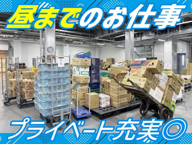 仕事内容 \未経験OK!/ ⭐フォークリフトの免許取得可能⭐ 【お仕事内容】 中央卸売市場で、 朝仕入れた商品を取引業者様ごとにFAXや注文書をみて揃えていくお仕事です。 ・野菜の仕分け ・積み込み ・陳列 ・ピッキング ・配達 などの作業があります。 未経験でも簡単なことからお願いするので安心です♪ 「市場に興味がある」「朝の時間を有効活用したい」 方など前向きにまじめに働いてくれる方歓迎! 市場の屋内は冷房が効いているので、 夏場でも働きやすい◎