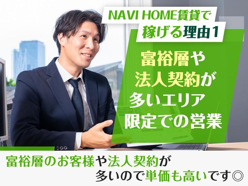 仕事内容 ✅賃貸営業なのに稼げる理由は!! ◆独自のマーケティング戦略により月問い合わせ件数は1000件以上! ◆飛び込み・テレアポ無しで圧倒的に売れる、稼げる仕組みがあります! ◆賃貸需要が安定している人気エリアだから成約までの日数が短い! ◆富裕層のお客様や法人契約が多いので単価が高い=稼ぎやすい ◆売上10〜20%をインセンティブ支給!年収1000万円越えの営業も在籍! ⭐同業からの転職者の収入アップ実績 前職不動産賃貸営業:年収545万円 ⇒NAVI HOME賃貸営業:年収900万円 初年度から年収65%以上のUPを実現 ⭐インセンティブ制度 売上の10〜20%をインセンティブとして支給します。 ・平均売上150万円〜(インセンティブ12%以上) ・トップ営業200万円〜300万円も可能(インセンティブ14%〜17%以上) ⭐直近のインセンティブ支給実績 100万円超の社員が3名おり、最高額は198万円となります。 ✅働きやすい環境あります!! ◆月8日休み&希望休により土日休みも可能 ◆5日以上の連休取得もOKだからプライベートも充実! ◆メンバーのほとんどが20代・30代の中途入社。転職してすぐに馴染める環境があります。 ◆賃貸だけではなく将来的には不動産売買、中古マンションの買取・リノベーション企画・再販業務などへのキャリアチェンジも可能! ◆恵比寿本店の他、目黒店(目黒駅スグ)、渋谷店(渋谷駅スグ)、赤坂店(溜池山王駅スグ)でも募集中 【具体的な仕事内容】 ✅お問い合わせ対応 ✅お客様へのヒアリング ✅物件案内と内見同行 ✅ご契約対応 ╔═════✨═════╗ 完全反響を生み出す 徹底したマーケティング ╚═════✨═════╝ 広告への多額投資はもちろんのこと、エリア客層などを踏まえた独自のマーケティング戦略で業界トップクラスの反響率を誇っており、問い合わせが多数集まる仕組みを確立しています。 都心部の人気エリアの中で、反響の多い条件(間取りや広さ、その他条件)を細かく分析し、仲介物件サイトへ掲載。 新着物件の掲載順序もすべてがシステムに条件保存されており、的確にスピード感をもってたくさんの物件を掲載し、新着も出しやすい仕様となっています。 ╔═════✨═════╗ 月間問い合わせ件数 月間顧客対応数 ╚═════✨═════╝ 月間問い合わせ件数は1000~1500件となっており、季節により若干の変動がありますが、一人当たり毎月100件〜200件ほど反響の新規顧客対応を全社で行っています。 ╔═════✨═════╗ 成約までの平均日数 ╚═════✨═════╝ 顧客の状況にもよりますが3週間〜1ヶ月での成約が平均となっています。 渋谷区・港区・目黒区・世田谷区・品川区という賃貸需要が安定している人気エリアとなるため、早い場合は2週間で成約となることもあり、短期間でインセンティブ獲得も可能となっています。 特に法人契約や富裕層向けの高級賃貸も多く、平均物件家賃平均物件家賃は15万円〜20万円となっており、仲介手数料の単価が高くなりやすいことが特徴です。 また、顧客には企業経営者・芸能人・外資系企業の駐在員など、ハイクラスな層が多く、人脈を広げてご紹介をいただいたり、リピートでお声がけいただくなど、自身の収入に直結するノウハウも身につけることが可能です。 ╔═════✨═════╗ 営業社員情報 ╚═════✨═════╝ 年代別人数/20代8人・30代2人 男女比/男6:女性4 不動産業界の経験者だけでなく元居酒屋アルバイトスタッフ、新卒入社、元ダンサーなど、販売・サービス業界経験をはじめとした様々な経験を持つ方も活躍しています。 ╔═════✨═════╗ 入社後研修 ╚═════✨═════╝ ●入社~1ヶ月間 不動産業界や賃貸仲介の基本知識から営業スキルについて基礎からレクチャーします。 1週目:ポータルサイトへ物件の掲載 電話対応 2週目:営業(反響対応)研修 2日間 実際に反響対応 3週目:先輩の案内同行 自身のアポイントの実践(先輩同行) 4週目:先輩の案内同行 自身のアポイントの実践(先輩同行) ●2ヶ月目~ 実際に反響の対応をし営業活動していきます。2ヶ月目から独り立ちができる教育カリュキュラムが入社〜1ヶ月間で組まれております。 ※基本的には未経験者でも2ヶ月目から成果を上げられる研修スキームとなっております。 経験者の方であれば1ヶ月目から早々に営業活動することも可能です。 〓〓〓〓〓〓〓〓〓〓〓〓〓〓〓〓〓 女性社員が語る 【NAVI HOME】の魅力ポイント!! 〓〓〓〓〓〓〓〓〓〓〓〓〓〓〓〓〓 ✨ポイント.1✨━━━━━━━━━ 高単価のエリアだから 賃貸でも稼げる! ━━━━━━━━━━━━━━━━ 高単価物件が多いため少し不安がありましたが、高待遇で働けることができているので、今ではそれこそがこの仕事の醍醐味だと感じています。また「賃貸営業は稼げないのでは…?」と考えていましたが、いい意味で裏切られています! ✨ポイント.2✨━━━━━━━━━ みんなが本気で目標に向かう 姿勢が私に合ってました! ━