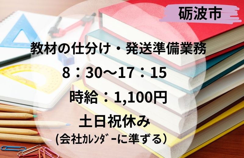 仕事内容 参考書の仕分け 検品のお仕事 台車を使って参考書を運ぶので重量物を持ち上げる事はありません! ・教材のピッキング ・書店・学校ごとの仕分け作業 ・検品、箱詰め ・出荷準備 シンプル作業で覚えやすく、モクモク作業が好きな方にぴったり! うれしい土日祝お休みのお仕事♪ 多くのアシストユースタッフが在籍中★