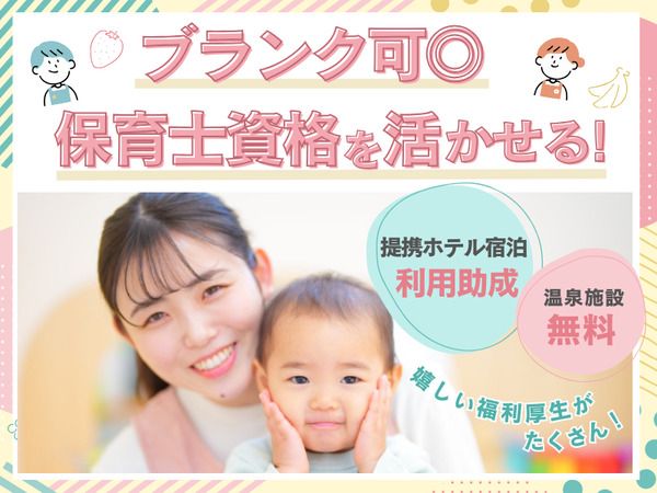 応募資格 要:保育士および児童指導員資格 資格はあるけど未経験の方も大歓迎! \こんな方にオススメ!/ ・ブランクがあり、資格を活かしながら復職を考えている方 ・プライベートも充実させたい方