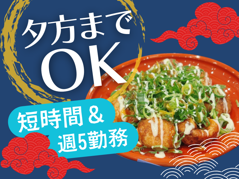 仕事内容 たこ八では、 20代・30代・40代の スタッフさんがたくさん 活躍しています! <シフトについて> 基本はフルタイムですが、 ・別の仕事が始まる夕方までの時間で働く ・平日だけ! ・曜日によって働く時間の調節 ・週5だけど、短時間希望 など、融通が利きます◎ ★面接ではあなたが働きやすいスタイルも ご相談くださいね♪ 初めからしっかりシフトに 入りたい方は大歓迎! 【”たこ八”を選ぶ方は こんな方が多いです!】 ・たこ焼きが好き ・安定して働きたい ・長期で働きたい ・フルタイムで働きたい ・調理未経験だけどチャレンジしたい ・昔飲食で働いていた、ブランク復帰 ・短時間で毎日コツコツパートしたい ・今の収入の底上げに働きたい ・地元で働きたい ・知名度のある企業で働きたい など!応募理由は人それぞれ◎ <お仕事は具体的に…> ・焼き上げ、提供 ・洗い場 ・たこの解凍などの仕込み など 外はこんがり!中はふわっ! 自慢のたこ焼きを あなたも作ってみませんか? お料理をしたことない方も プロの味がだせるマニュアルと 丁寧な研修制度を整えていますよ。 今、お店を支えてくれているスタッフも 未経験から始めた方がほとんどなので あなたの気持ちに寄り添ってお教えするので 安心して働いていただけます! <入社してまずやってみること> まずは洗い場やメニューを 覚えることからスタート! スタッフ皆が初日でお仕事を マスターできるほど、 シンプルで覚えやすい&カンタン業務! <業務に慣れてきたらやってみること> たこの解凍などの 仕込み・提供もお願いします! 料理の前に立つ作業や、焼き上げは すぐにお任せしないので、 経験がない方でもスグに慣れるはず! お店に慣れてきてから、 たこ焼きの焼き方もお教えしていきます! <お店のこと> ららぽーと和泉フードコート内の店舗なので 客席案内や配膳、片付けで 走り回ることも一切なし! 施設のオープン当初からあります。 メニューも ・たこ焼き ・イカ焼き ・お好み焼き なので たくさんのレシピや 料理名を覚える必要なし。 勤務時間に関わらず、 美味しいまかないが食べられるのも魅力! 生地や出汁、具など味にこだわり 真心込めて焼き上げ、 おもてなしの心で接客を行う「たこ八」で 一緒に働きませんか? <土日祝は時給50円アップ!> 祝日や土日に働ける方は嬉しい高時給! さらに半年に1回の昇給制度もあり、 あなたの頑張りがお給料に反映されるので モチベーションにも繋がりますよ! <マイカー通勤OK&交通費規定支給> 交通費は1日1000円まで支給され、 車、バイク通勤もできますよ! 退勤後のお買い物・カフェや送迎も 乗り換える必要がないので とっても楽になります♪ 和泉中央駅からバスもでているので 車をお持ちでない方も通勤ラクラク! 近隣から通われているスタッフもいます◎ <30代・フリーターさんのインタビュー> 地元で働きたい&粉もんが大好きで たこ八に応募しました! 別の仕事と掛け持ちしながら 働いていますが、 シフト希望を優先して もらえるので助かってます! また先輩たちの千枚通しさばきが かっこよく、自分もはやく ああなりたいですね! <事業内容> ららぽーと和泉で愛されるたこ焼き・鉄板焼き店