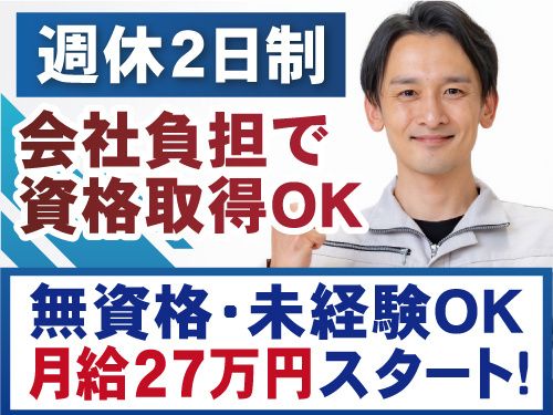【日勤固定/週休2日制】無資格・未経験でも月給27万円以上! 会社負担で資格取得支援あり!