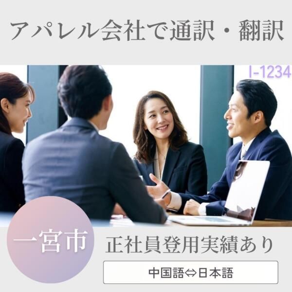 仕事内容 アパレル会社での通訳・翻訳スタッフ募集 【お仕事内容】 ・海外のお客様対応(日本語⇔中国語の通訳業務) ・電話での対応や簡単な翻訳業務 ・中国の工場との納期調整など 【おすすめポイント】 お休み多めで働きやすい! プライベート重視の方に最適 正社員登用実績あり! キャリアアップも目指せます 残業月5時間程度で負担少なめ 男女ともに活躍中! 通訳経験者は特に歓迎 「語学力を活かして働きたい」 「柔軟な勤務形態を希望」 という方におすすめ! まずはお気軽にお問い合わせください。