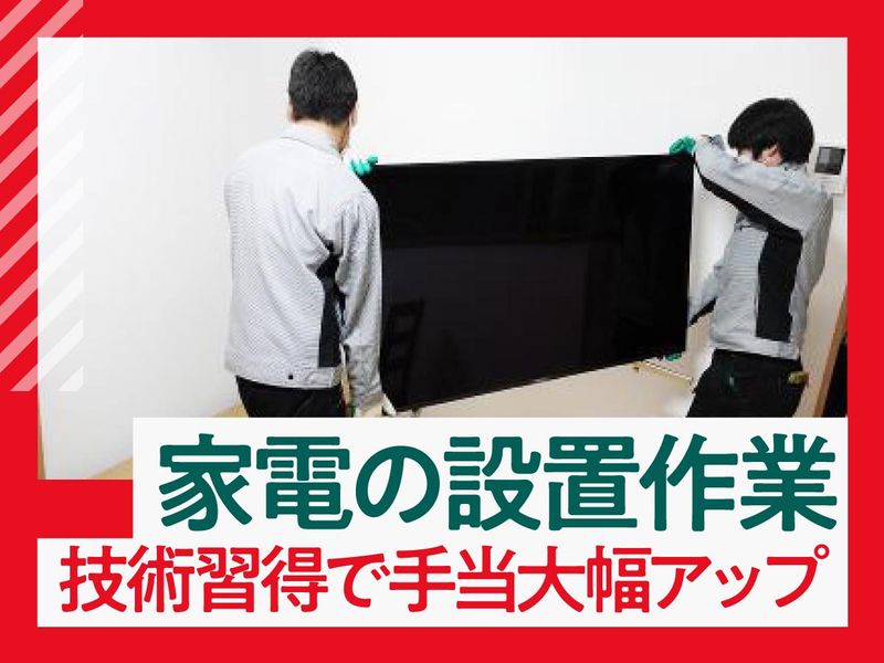 求めている人材 40歳未満(キャリア形成による) *経験者歓迎 *未経験者歓迎 *資格不問/無資格歓迎・ブランク歓迎 *20代活躍中/設置スタッフ社員平均年齢28歳 =============== 【こういった方からの応募も歓迎】 ・引っ越し現場での勤務経験がある方 ・家電設置や配送経験のある方 ・運動好きの方 ・程よく筋トレしながら働きたい方 ・チームワークを大切にできる方 ・安定した会社で長く働きたい方 ・新しいことにチャレンジしたい方 ・ワークライフバランスを重視している方 ・近場でサクッと働きたい方 年齢の条件と理由:あり(※60歳/定年制度 (※55歳/役職定年制度))