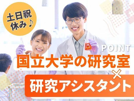 【国立大学の研究室勤務】細胞培養やDNA実験など幅広い実験に挑戦。丁寧なサポート有!土日祝休み♪
